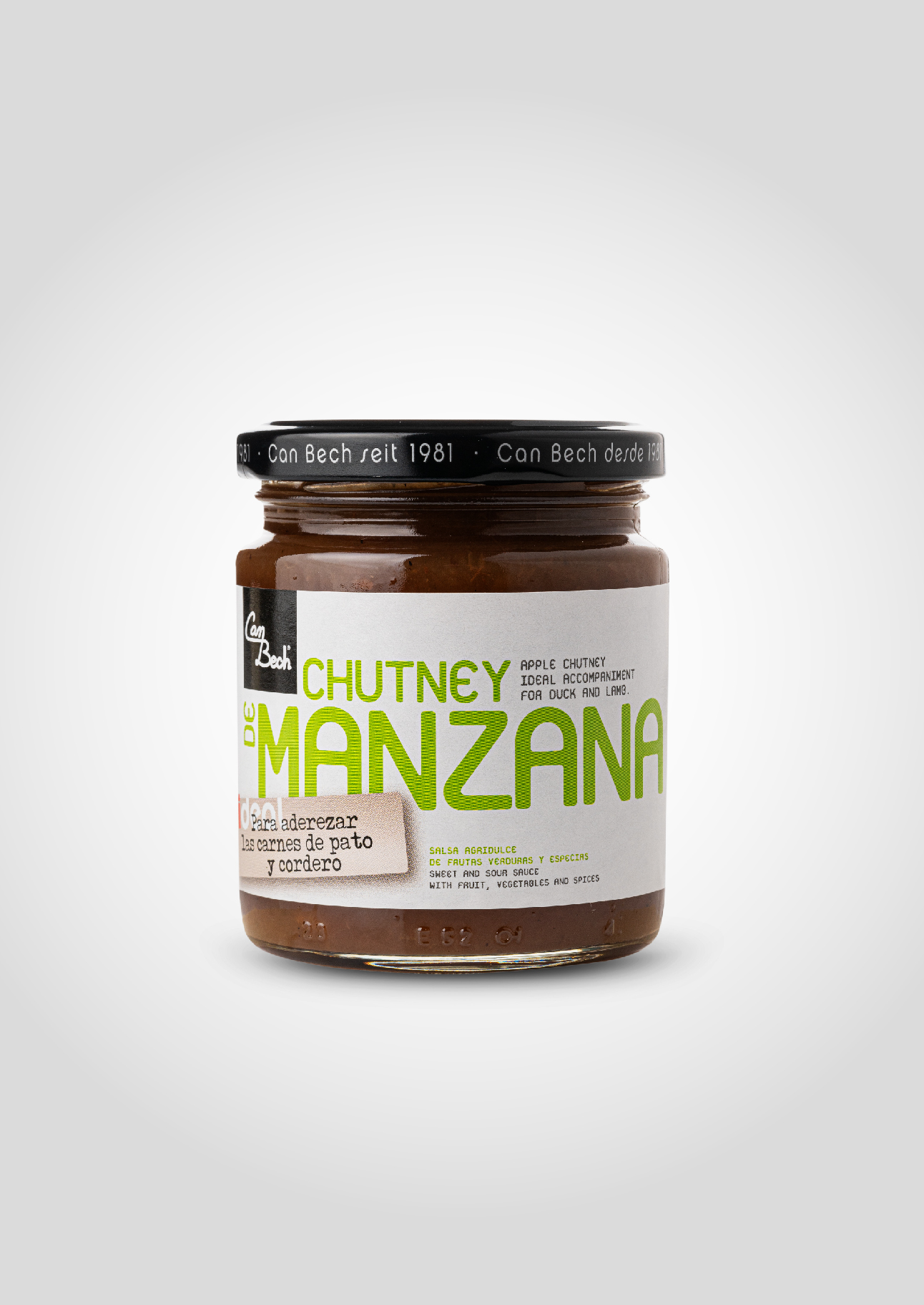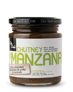 Chutney de poma golden amb ceba, panses, gingebre i clau d'olor. Els chutneys són agredolços fets a partir de fruites, verdures i espècies. Nosaltres els hem adaptat a l'estil mediterrani amb espècies pròpies de la nostra cuina, fent-los més harmoniosos i no tan picants com les receptes originals procedents de l'Índia.