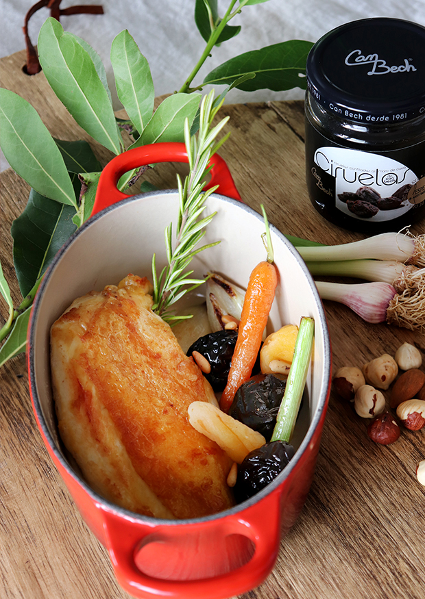 Les prunes amb marc de cava estan caramel·litzades amb almívar, amb un toc final de licor marc de cava L'Esperit, d'Agustí Torelló i Mata. És un producte que combina el dolç de la fruita amb el sabor intens del licor marc de cava.