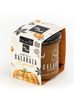 Ingredients: carbassa 61%, sucre, suc de llimona, gelificant: pectines, gingebre 0,3%, anís 0,1% i canyella 0,01%. Elaborat amb 61 grams de fruita per 100 grams. Contingut total de sucres 41 grams per 100 grams.