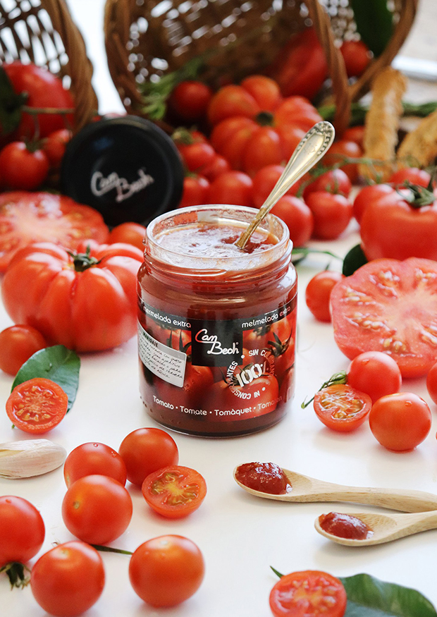 La melmelada de tomàquet és una especialitat espanyola, elaborada amb tomàquets madurs de la regió de Múrcia. Elaborem aquesta melmelada només a l'estiu, quan els tomàquets són bons i madurs, i així aconseguim de manera natural aquest fantàstic color vermell.